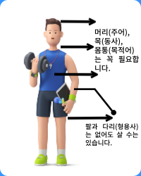 사람은 머리, 목, 몸통이 없으면 죽게 되지만 팔, 다리가 없으면 살수는 있습니다. 마찬가지로 문장에서 주어, 동사, 목적어가 없으면 죽은 문장이 됩니다. 그래서 주어, 동사 목적어를 필수 성분(꼭 필요함)이라고 하고, 형용사를 부수적인 성분(꼭 필요하지 않음)이라고 합니다.